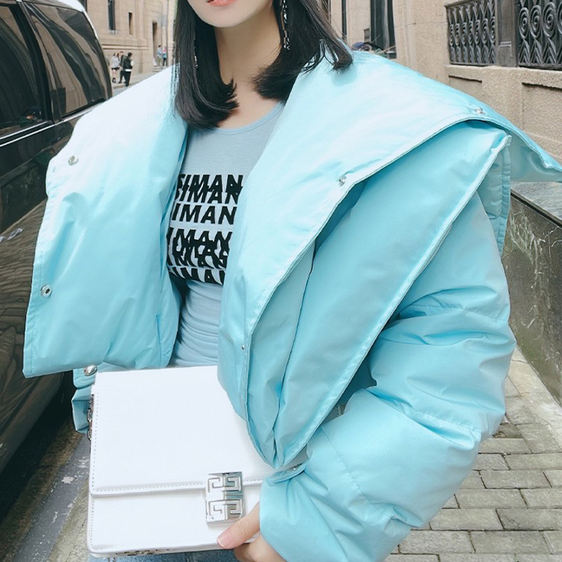 羽绒外套女2021秋冬新品气质时尚原创设计感小众短款羽绒服大翻领热门设计联盟服务商