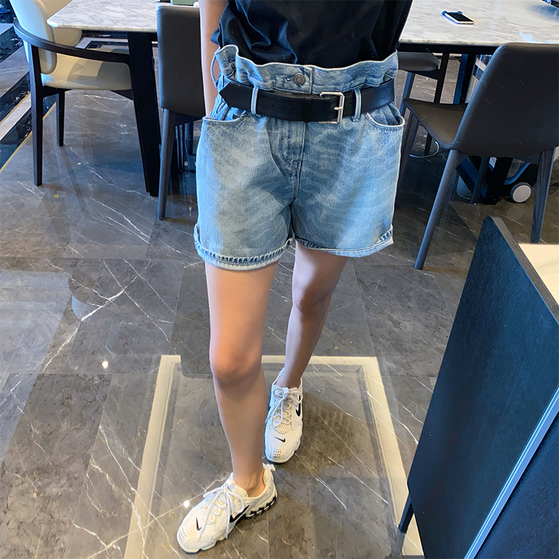 【现货】MissSha 蓝色牛仔短裤女夏设计感小众高腰显瘦裤子带腰带热门设计联盟服务商