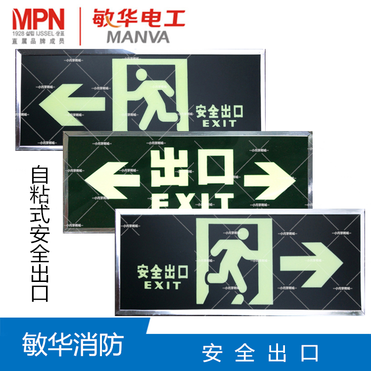 敏华安全出口指示牌夜光墙贴通道警告示左右双向标志紧急超薄自粘热门设计联盟服务商