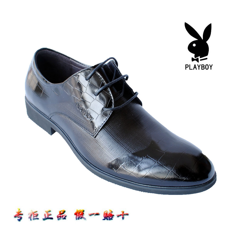 花花公子男鞋新款 英伦商务 休闲系带 真皮尖头皮鞋141-611520黑热门设计联盟服务商
